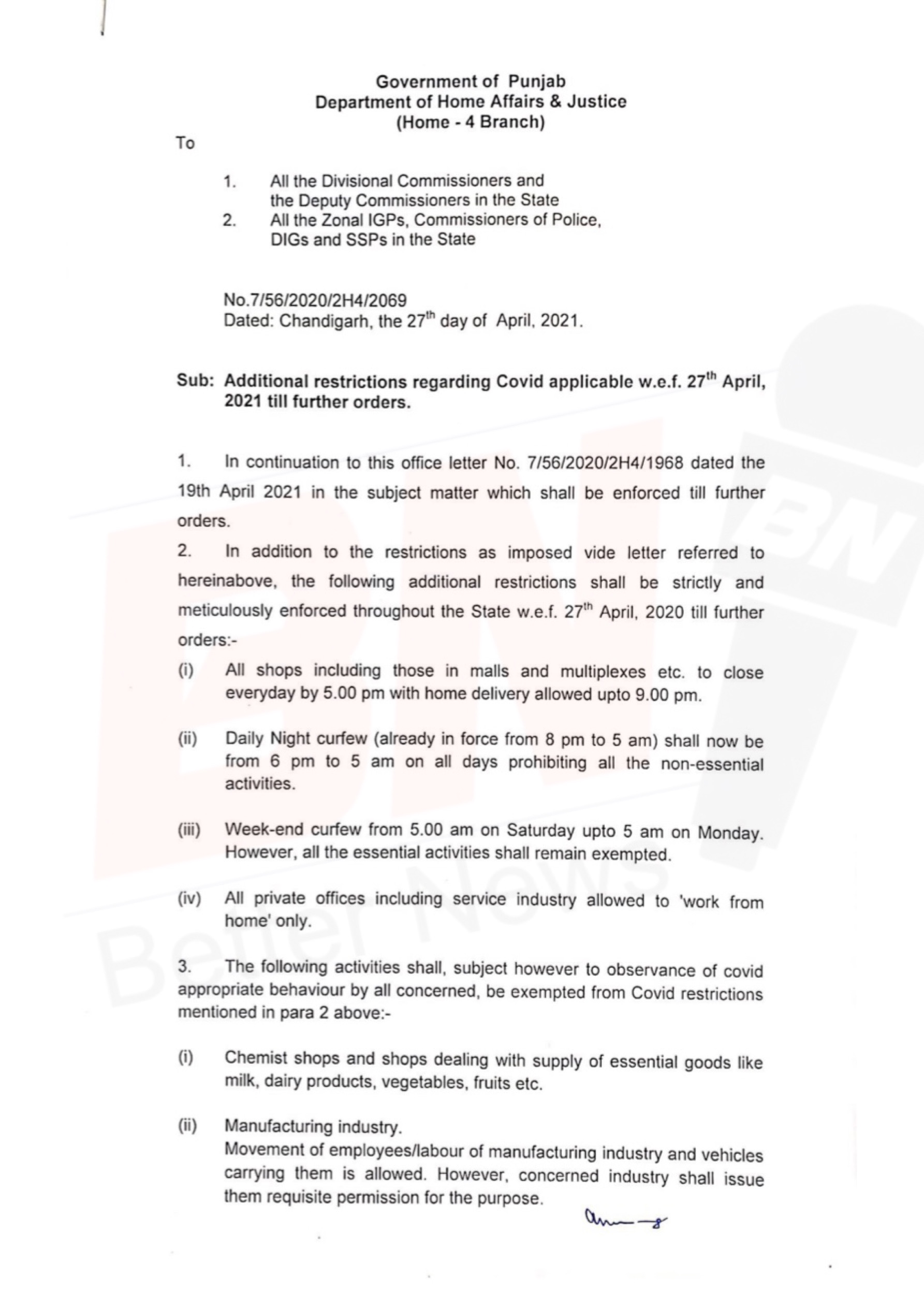 पंजाब: सरकार ने नाइट कर्फ्यू और वीकेंड कर्फ्यू के लेकर जारी की guidelines, जानें क्या खुलेगा और किस पर रहेगी पाबंधियाँ!